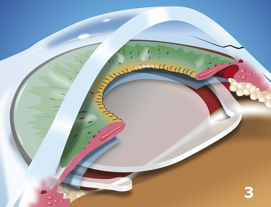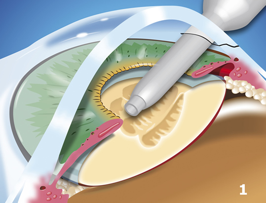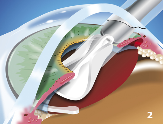 After the old, cloudy lens has been removed it is replaced with a new one